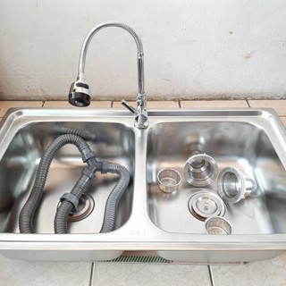 Paket Komplit Bak cuci piring 2 lubang 83cm/kitchen sink ... from cf.shopee.co.id Bak cuci piring royal sb 35 sink bak cuci piring royal sb 35 sink bak cuci piring 2 lubang ukuran 82 single bowl undercounter plastik ukuran bak cuci piring 2 lubang bak cuci piring 2 lubang ukuran 82. Merk royal sb 42 ini merupakan salah satu tempat mencuci piring yang super murah, tetapi tetap berkualitas. Tak hanya menyediakan varian kitchen sink 1 lubang, produk tersebut juga menyediakan kitchen sink 2 lubang yang harganya relatif terjangkau. Terdapat 2 buah lubang sink tempat cuci piring dan 4 pintu beserta rak didalamnya. Our kitchen sinks have special paint and rubber paddings for sound absorption. Sink royal bulat 2 lubang sb 12, harga 1.685.000/dus. ~ harga sudah termasuk ppn 10%. Kitchen sink yang terbuat dari stainless steel akan memudahkan anda untuk merawat dan membersihkannya.